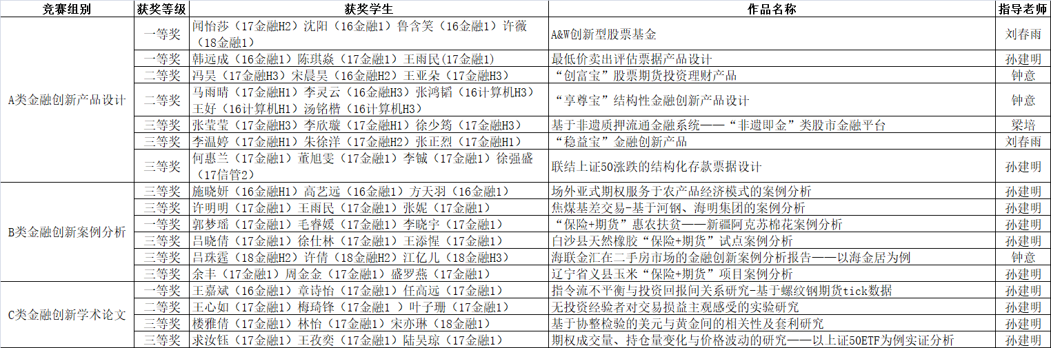 12月1日,第四届“杭州银行杯”浙江省大学生金融创新大赛在浙江工商大学落下帷幕,我校学生获得省一等奖4项、省二等奖3项、省三等奖10项。