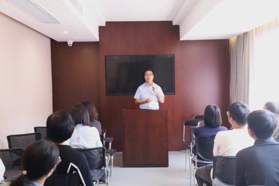 在结束清廉教育基地的学习参观后,李战国从围绕“深刻把握学习贯彻习近平新时代中国特色社会主义思想主题教育的落脚点”为主题进行了专题党课宣讲,党课以学习习近平总书记关于教育的重要论述为开篇,结合对主题教育“学思想、强党性、重实践、建新功”的总要求的学习领悟和工作实际,重温党的初心、感悟党的使命,他希望全院教职工进一步明确思路、继续围绕党的方针政策和年度重点工作凝心聚力、精准发力,全力以赴完成本年度重点工作指标任务。