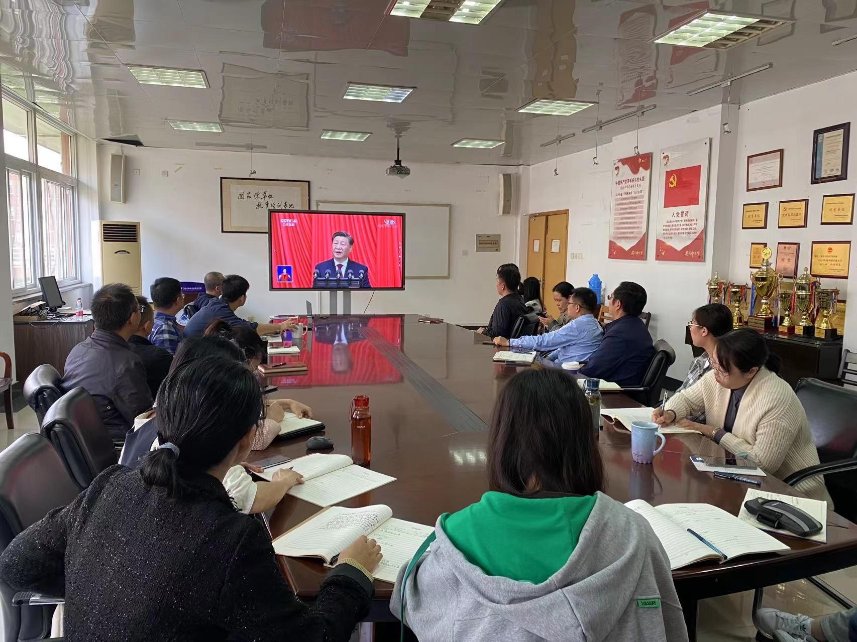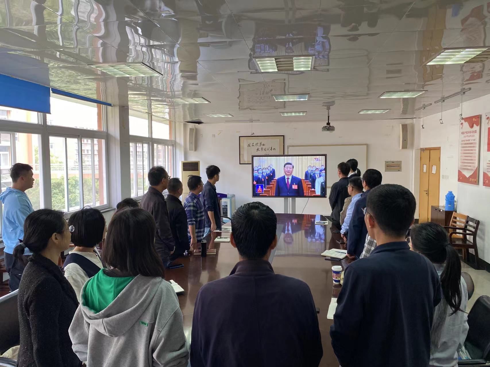 16日上午9时45分,学院与会同志按指定区域入场完毕;同志们怀着激动的心情等待大会开幕。随着大会开幕,收看直播的同志们全体起立,高唱国歌。开幕会历时近2小时余,习近平总书记的报告激荡群情、催人奋进。全场同志全程认真聆听、深入学习领会。当习近平总书记报告结束时,同志们也随着现场代表们一起长时间热烈鼓掌,表达对这次团结、胜利、奋进的空前盛会的祝贺,表达对总书记的高度信赖、坚决拥护和衷心爱戴。