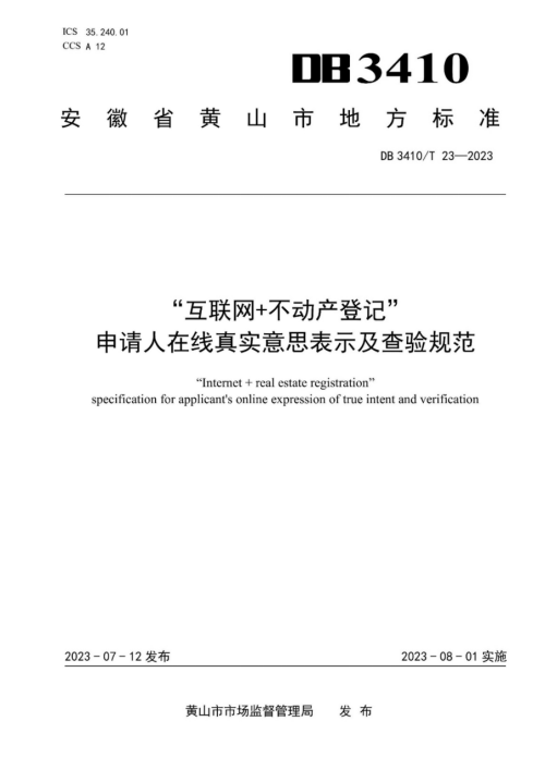 近日,由我校金沙集团1862cc师生团队作为技术服务单位主持编制的《“互联网+不动产登记”申请人在线真实意思表示及查验规范》黄山市地方标准正式发布,并将于2023年8月1日正式实施。该项标准的发布实施,填补了“互联网+不动产登记”申请人真实意思表示及查验技术这一空白,也是全面推进“互联网+不动产登记”的关键一步,是全国首个“互联网+不动产登记”领域的相关标准,有利于维护不动产权利人的合法权益,让“互联网+不动产登记”的改革红利惠及更多企业和群众。
