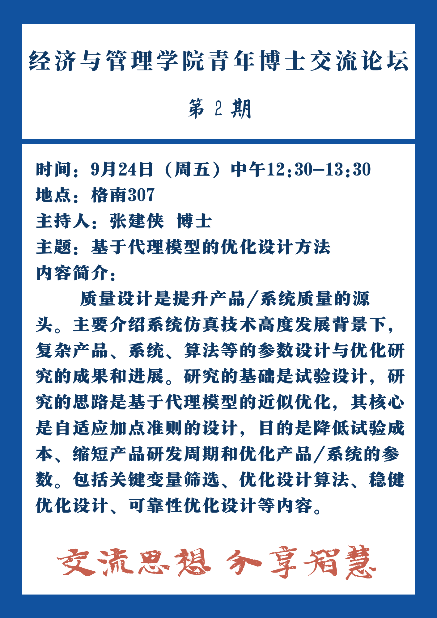 [9月24日]青年博士交流论坛第2期:基于代理模型的优化设计方法