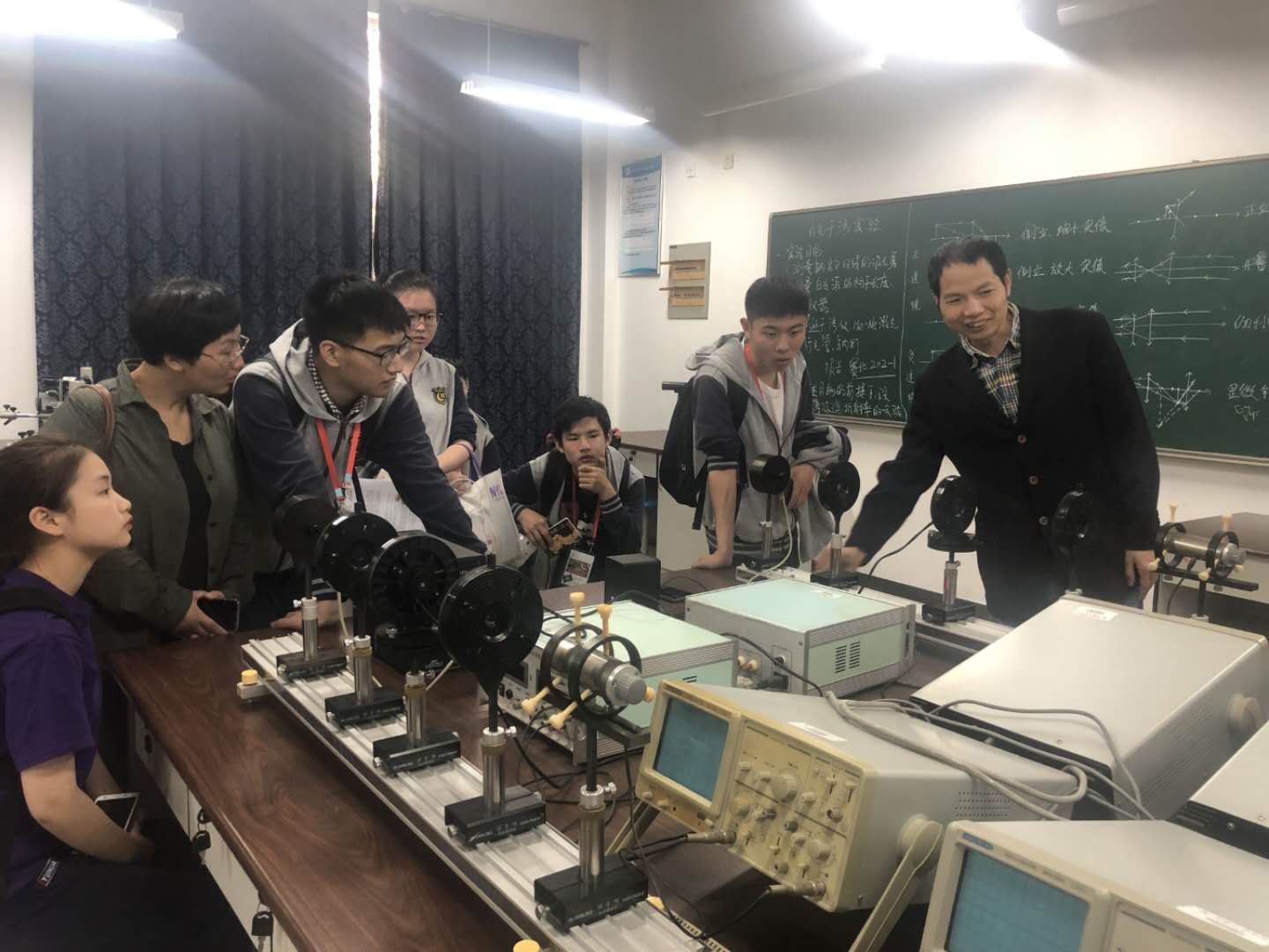 在课外,师生一行参观了我校海克斯康“精密测量与智能制造工程研究院”、光电学院实验室和大学生创新成果展示中心,精密测量技术及仪器设备、LED结构及荧光粉制备、电光调制和灯具光学特性测量等实验、我校学生的创新成果都给师生留下深刻印象。