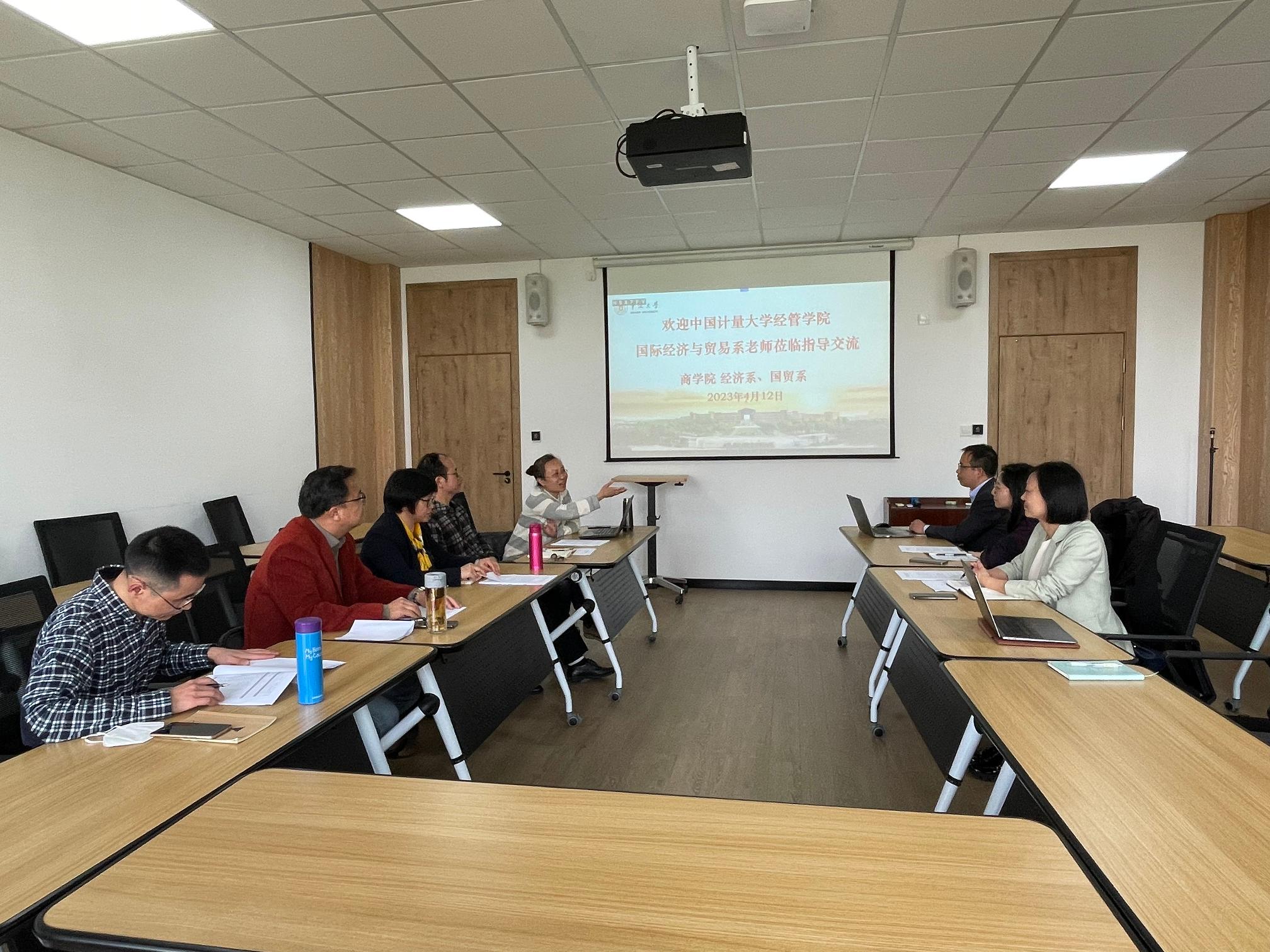 徐群芳教授对中国计量大学国际经济与贸易专业教师的到来表示了热烈欢迎,介绍了宁波大学商学院经济系的基本情况。丛海滨教授结合宁波大学国际经济与贸易国家一流专业建设经验,从专业建设、培养方案设计、一流课程建设、教学组织、教学竞赛等方面做了全面交流。会后,金祥荣院长分享了三个“一批”国一流专业建设经验,既一批教改论文、一批教改课程、一批教改课题。