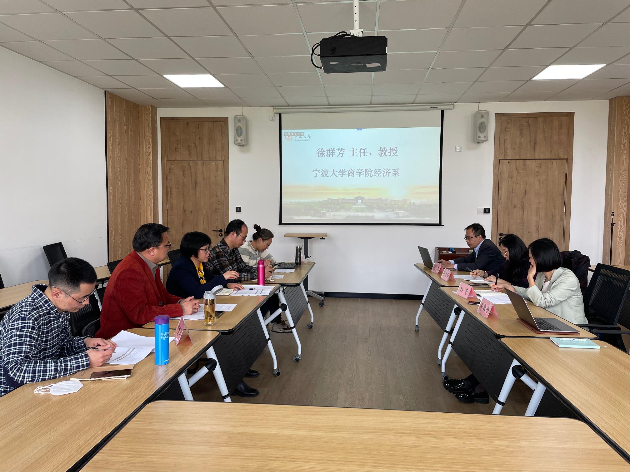 4月12日下午,金沙集团1862cc成色国际经济与贸易专业负责人隋月红、专业骨干教师江涛、孙莹等前往宁波大学商学院就国际经济与贸易国家一流专业建设开展调研学习。宁波大学商学院院长金祥荣、经济系主任徐群芳、国际贸易系主任丛海滨等教师出席了调研活动。