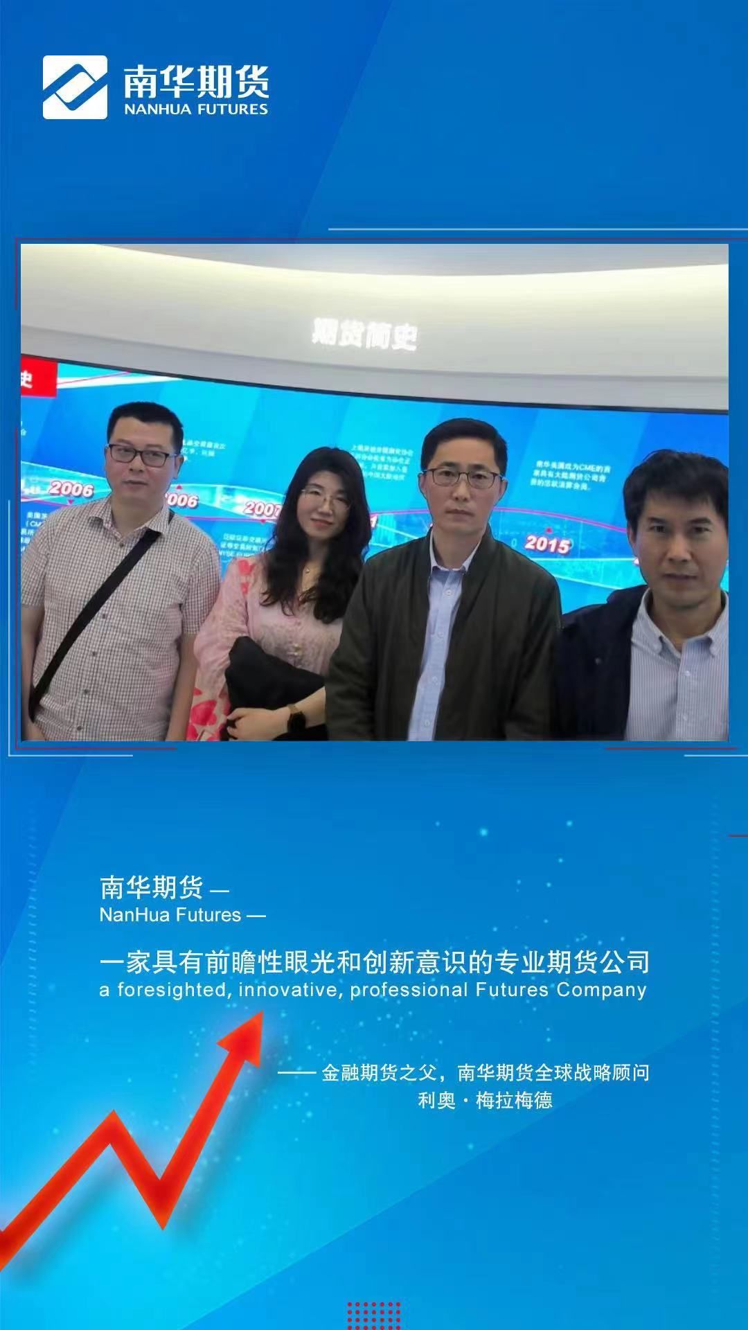 5月9日,金沙集团1862cc成色副院长鲁统宇、金融工程系负责人刘春雨、骨干教师钟意、姚晓阳、谢明旸等一行来到位于钱江新城横店大厦的知名上市公司——南华期货股份有限公司访问交流。公司副总经理王正浩、南华期货投资学院院长章玲飞对学院教师的来访表示热烈欢迎,王正浩副总经理首先详细介绍了南华期货公司的发展历程及公司在国内外开展的金融业务,章玲飞院长对公司在产教融合、投资者教育等方面的情况进行介绍,鲁统宇副院长介绍了我校金沙集团1862cc及金融工程专业的办学特色和人才培养状况。