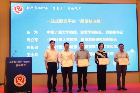 会上,姜能还为我校的教授团队颁发了一站式服务平台“质量特派员”证书。合作中心后续将协同开展质量攻关、质量创新、品牌培育等工作,由“质量特派员”为区域、产业、企业提供“管家式”服务,为推动高质量发展提供关键支撑作用。