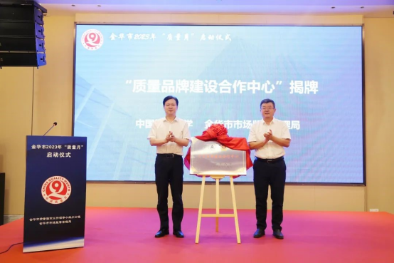 会上,王迪钊与姜能共同为我校与金华市市场监管局合建的“质量品牌建设合作中心”揭牌。该中心的揭牌成立,预示着我校与金华在建立“政产学研用”深度融合的质量创新体系方面又往前迈进了一步。