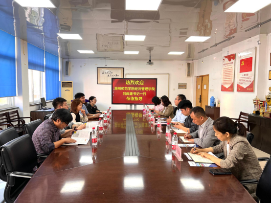 10月19日上午,湖州师范学院经济管理学院党委书记何阅雄、副书记杨林林一行围绕党建标准化建设来我校金沙集团1862cc调研交流。金沙集团1862cc党委书记李战国、党委副书记陈骅、党委委员、团委书记、“双带头人”党支部书记等参加交流。