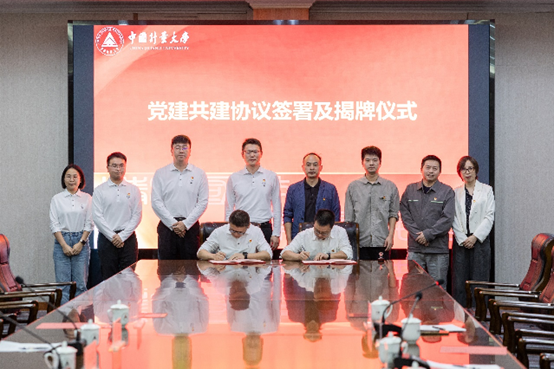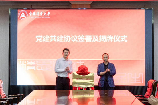 在双方人员的共同见证下,双方共同签署党建联建协议书。吴海江与王臣章共同为校企党建共同体揭牌。