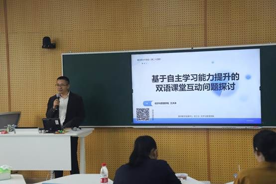 最后,王洪涛就如何加强双语课堂互动提出了自己的见解。他指出,互动不应流于形式,不能“为互动而互动”,双语课堂也不是简单的英语口语练习场。核心在于通过提升学生的自主学习能力,促进他们对专业知识的深入理解和应用。他呼吁教师们关注教学目标的本质,探索有效的教学策略。