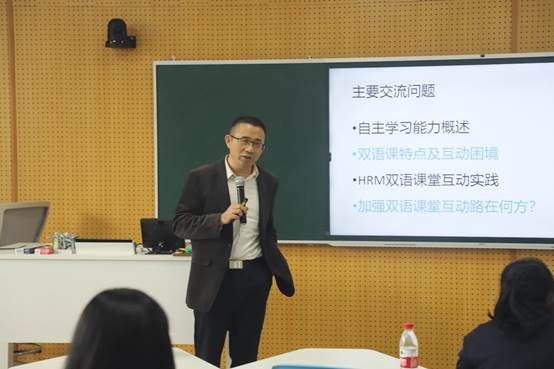 在分享人力资源管理(HRM)课程的教学实践时,王洪涛介绍了多种促进课堂互动的方法,包括引入“探寻HR之道,打造智慧人生”的主题,通过案例分析(Introductory Case)、示例讲解(Examples)、提问互动(Questions)、术语解释(Terms)、角色扮演(Role play)等方式,激发学生的学习兴趣和参与度。他强调,以培养学生的自主学习能力为目标,课堂互动的改进将是一条持续探索的道路。