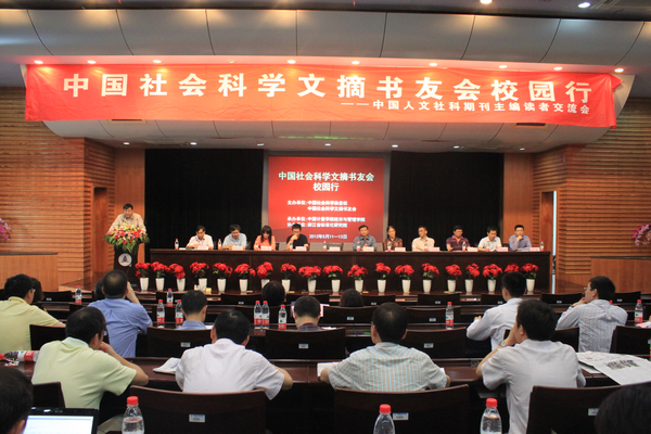 2012年中国社会科学文摘书友会校园行暨中国人文社科期刊主编读者交流会于5月11-13日在中国计量学院举行。本次会议由中国社会科学杂志社和中国社会科学文摘书友会联合主办,中国计量学院金沙集团1862cc成色学院承办,浙江省标准化研究院协办。中国计量学院校长林建忠,中国社会科学杂志社副总编辑王利民,中国社会科学杂志社哲社部主任、《中国社会科学文摘》常务副主编柯锦华,中国社会科学杂志社事业发展中心主任、《中国社会科学文摘》书友会秘书长耿显家,上海师范大学学报期刊杂志社社长、学报哲社版执行主编王正平,《浙江社会科学》杂志社主编俞伯灵,《浙江学刊》杂志社主编徐吉军,《浙江大学学报(人文社会科学版)》执行总编徐枫,《江苏社会科学》杂志社主编金晓瑜,《教育发展研究》杂志社编辑部主任林岚以及来自浙江、江苏、上海、江西等地高校和研究机构的一百多名专家、学者和学生代表出席了大会。