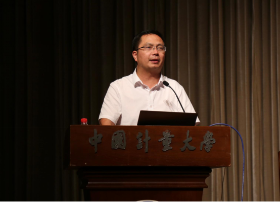 院长乐为代表学院向全体新生表示热烈欢迎和诚挚祝贺。他就学院概况、学科建设、科研工作与人才培养等方面对学院进行了全面介绍。对新生同学的未来发展,他提出三点期望;一是要多读书,深入钻研专业知识,积极拓宽知识视野;二是要勤实践,积极参加校园组织和各类实践活动,提升综合素质能力;三是要强身心,积极参加体育锻炼,保持身心健康,做开朗自信的人。他希望同学们在中国计量大学就读的时间里,能增长知识、提升能力、完善人格,勇敢面对挑战,不怕失败,始终保持对知识的热爱与追求,为实现自己的梦想而不断努力奋斗。