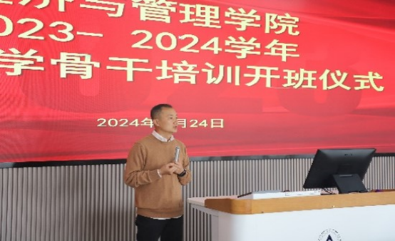 余恒森为开班仪式致辞。他向学员提出三点要求,一要认真学,要认真领会培训内容,真正有所学、有所得;二要多思考,要认真思考学生骨干的定位和如何在同学中发挥示范引领作用;三要早谋划,要认真谋划团学组织发展,努力带领团学组织不断进步。学院对学生骨干们寄予厚望,期待大家积极作为,奋力展现经管学生干部应有的风采。