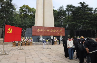 缅怀革命英烈,赓续红色血脉。踏过一级级高高的台阶,师生们来到高大的革命烈士纪念碑前。伴随着慷慨激昂的国歌,全体人员肃立,向革命烈士默哀。学生代表向革命烈士纪念碑进献花篮,将后人的哀思献给长眠于此的英雄先烈。随后,全体师生向革命烈士纪念碑三鞠躬,对革命先烈表以崇高的敬意,深切缅怀为民族独立、人民解放和社会主义事业英勇牺牲的革命先辈。
