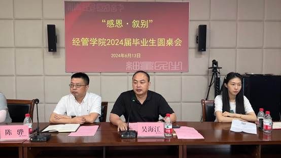 办好一场感恩叙别会。6月13日上午,“感恩·叙别”毕业生座谈会在闻厅204会议室举行,学院党委书记吴海江,副书记陈骅,全体系主任,毕业班辅导员、班主任代表,以及各班级学生骨干、学生组织骨干出席会议。