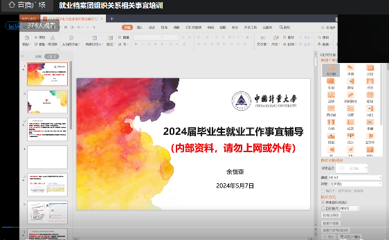 办好一场毕业教育。5月7日,学工办就毕业生就业、档案和团员组织关系转接和毕业前相关工作向全体毕业生开展离校教育(钉钉直播)大会。学工主管余恒森向毕业生解读毕业前就业工作相关事项,建议大家抓住毕业离校前的一个半月时间积极落实就业,并强调毕业季的相关安全事项,要求同学们要遵规守纪、树牢安全意识,确保安全文明毕业离校。团委副书记高菲和辅导员杜昱洁分别解读团员组织关系转接和个人档案转接工作,要求毕业生同学按照学校要求,对自己负责,及时转出团组织关系,做好个人档案归档材料,为顺利毕业做好保障。